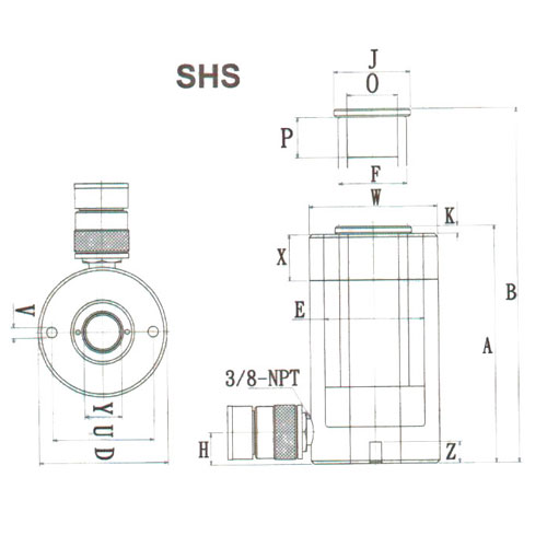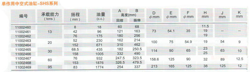 單作用中空式油缸-SHS系列最大工作壓力:700bar/10000psi,承載能力:13-95噸,揚程:8-155mm