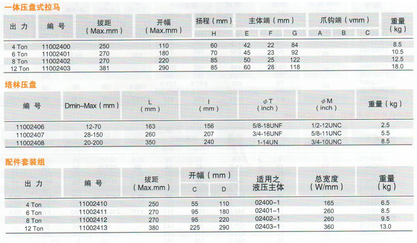 一體壓盤式拉馬/泛用型壓盤配件規格: