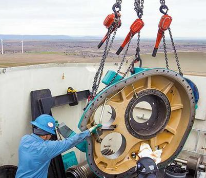 齒輪箱作為風(fēng)力發(fā)電機組的核心部件之一,連接著低速軸和高速軸,承擔(dān)著增速和傳遞扭矩的關(guān)鍵任務(wù)。由于其體積大、重量重,在拆卸時需要格外小心。手扳葫蘆在這個過程中發(fā)揮了重要作用。